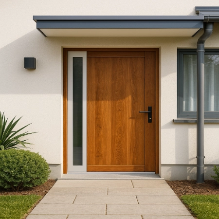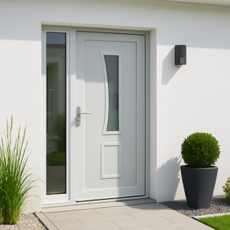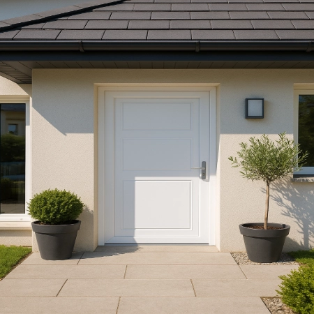 La porte en PVC est construite avec des panneaux alvéolaires ou renforcés, garantissant une bonne isolation thermique et phonique. Elle est légère, imputrescible et résistante aux chocs climatiques. Son avantage : un prix plus accessible tout en offrant un bon niveau de sécurité lorsqu’elle est équipée d’une serrure multipoints. Elle est aussi disponible en différentes teintes et finitions, permettant de s’adapter aux façades contemporaines comme traditionnelles.